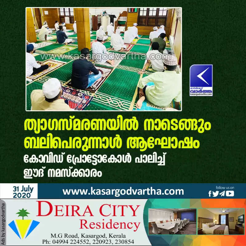 കാസര്കോട്: (www.kasargodvartha.com 31.07.2020) ത്യാഗസ്മരണകളിൽ വിശ്വാസികളുടെ ബലിപെരുന്നാള് ആഘോഷം. കോവിഡ് കാരണം ചെറിയ പെരുന്നാളിന് പള്ളികള് അടച്ചിടേണ്ടി വന്നിരുന്നത് കൊണ്ട് വീടുകളില് തന്നെയായിരുന്നു വിശ്വാസികള് പെരുന്നാള് നമസ്ക്കാരം നടത്തിയിരുന്നത്. എന്നാല് ലോക് ഡൗണ് ഇളവുകള് ലഭിച്ചതോടെ പള്ളികള് നമസ്ക്കാരത്തിനായി തുറന്ന് കൊടുത്തതിനാല് ബലിപെരുന്നാളിന് കോവിഡ് മാനദണ്ഡങ്ങൾ പാലിച്ച് പള്ളികളില് പെരുന്നാള് നമസ്ക്കാരം നടത്തി.