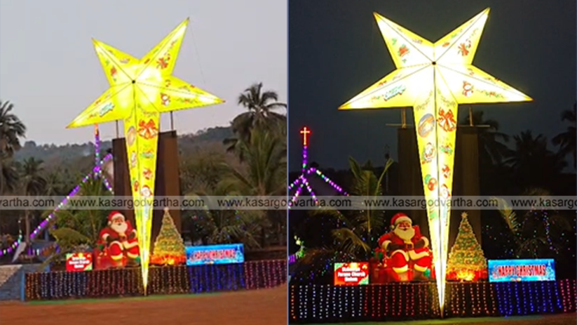 Article Summary: Giant Christmas star installed at Malom St George Church in Kasaragod, standing 13 times human height.