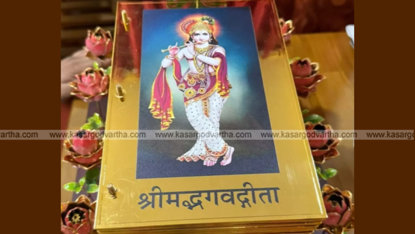 മംഗളൂരു: (KasargodVartha) ലോക ഗീത പര്യായ ആഘോഷ വേളയിൽ ഡൽഹിയിൽ നിന്നുള്ള ഭക്തൻ ഉഡുപ്പിയിലെ ശ്രീകൃഷ്ണ മഠത്തിന് സ്വർണ്ണ ഷീറ്റുകളിൽ കൊത്തിയെടുത്ത അപൂർവ്വ ഭഗവദ്ഗീത സമ്മാനമായി നൽകി.