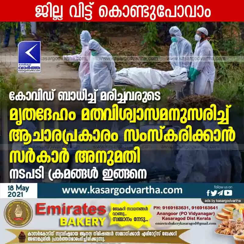 കോവിഡ് ബാധിച്ച് മരിച്ചവരുടെ മൃതദേഹം മതവിശ്വാസമനുസരിച്ച് ആചാരപ്രകാരം സംസ്കരിക്കാൻ സർകാർ അനുമതി; നടപടി ക്രമങ്ങൾ ഇങ്ങനെ