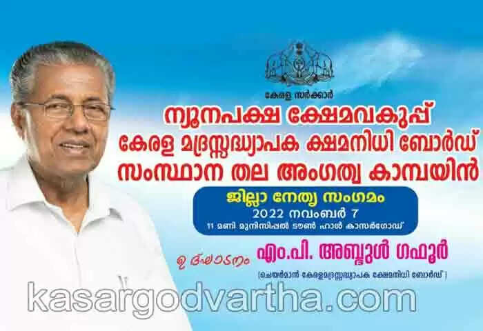 Keywords: Latest-News, Kerala, Kasaragod, Top-Headlines, Membership, Campaign, Teachers, Religion, Kerala Madrasa Teacher Welfare Board, Kerala Madrasa Teacher Welfare Board will organize membership campaign.