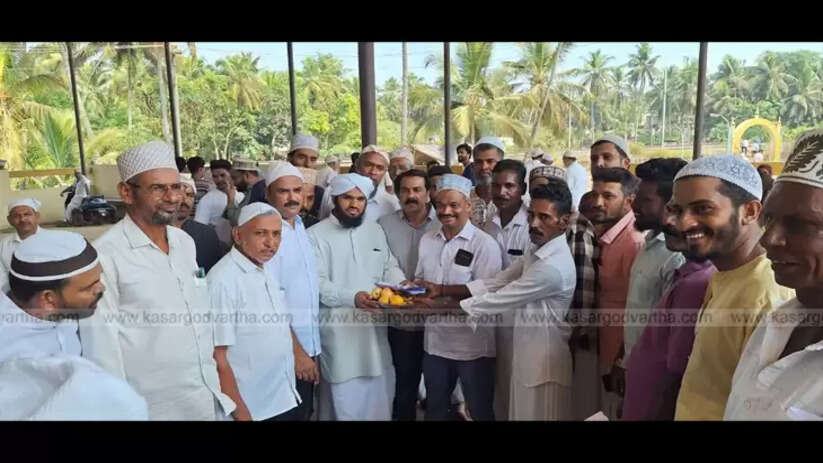 ചിത്രം: ഗാന്ധിനഗർ ശ്രീ ഗോഡ്ദബ്ബു ദേവസ്ഥാന നേമോത്സവത്തിന് ക്ഷണനവുമായി ക്ഷേത്ര കമ്മിറ്റി ഭാരവാഹികൾ മൊഗ്രാൽ വലിയ ജുമാ മസ്ജിദ് അങ്കണത്തിൽ എത്തിയപ്പോൾ മസ്ജിദ് കമ്മിറ്റി ഭാരവാഹികൾ അവരെ സ്വീകരിക്കുന്നു.