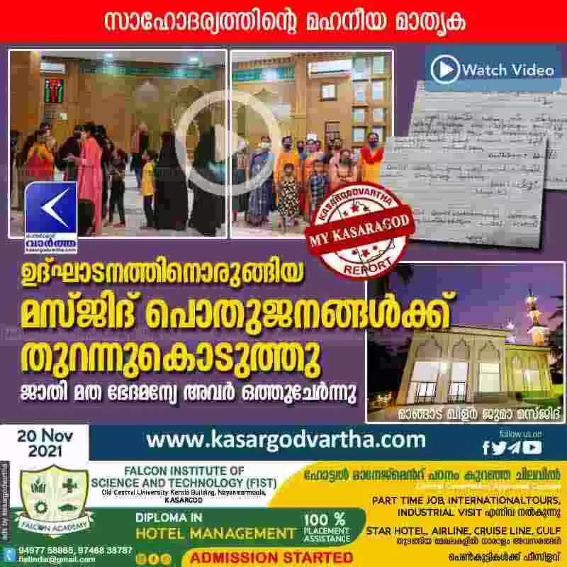 Keywords: Kasaragod, Kerala, News, Mangad, Masjid, Inauguration, Religion, Top-Headlines, Uduma, Members, Committee, Panchayath, Mosque opened to the public for visit.