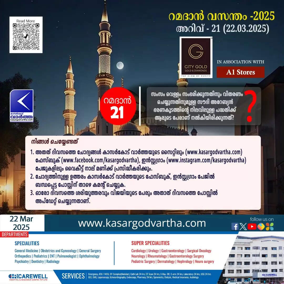 (KasargodVartha) അറിവ് - 21 (22.03.2025): സംസം വെള്ളം സംഭരിക്കുന്നതിനും വിതരണം ചെയ്യുന്നതിനുമുള്ള സൗദി അറേബ്യൻ ഭരണകൂടത്തിന്റെ നിലവിലുള്ള പദ്ധതിക്ക് ആരുടെ പേരാണ് നൽകിയിരിക്കുന്നത്?
