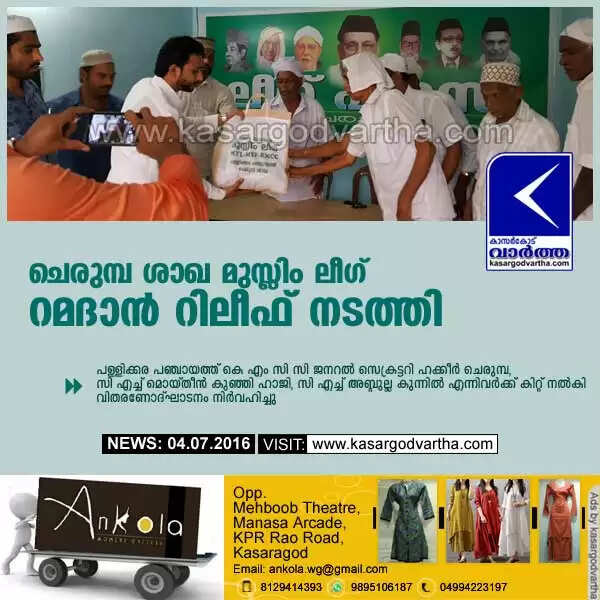 ചെരുമ്പ ശാഖ മുസ്ലിം ലീഗ് റമദാന് റിലീഫ് നടത്തി