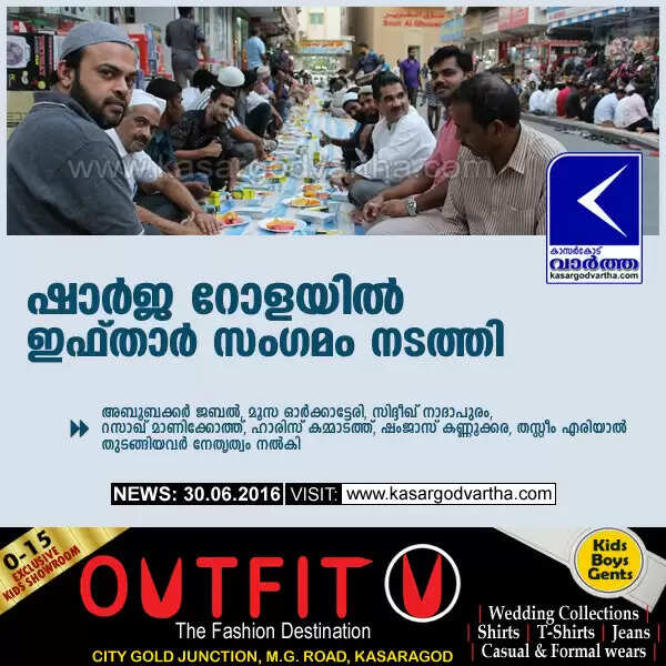 ഷാര്‍ജ: (www.kasargodvartha.com 30/06/2016) റോളയുടെ വിവിധ ഭാഗങ്ങളില്‍ പ്രവാസി കൂട്ടായ്മയില്‍ ഇഫ്താര്‍ സംഗമം നടത്തി. അബൂബക്കര്‍ ജബല്‍, മൂസ ഓര്‍ക്കാട്ടേരി, സിദ്ദീഖ് നാദാപുരം, റസാഖ് മാണിക്കോത്ത്, ഹാരിസ് കമ്മാടത്ത്, ഷംജാസ് കണ്ണൂക്കര, തസ്ലീം എരിയാല്‍ തുടങ്ങിയവര്‍ നേതൃത്വം നല്‍കി.