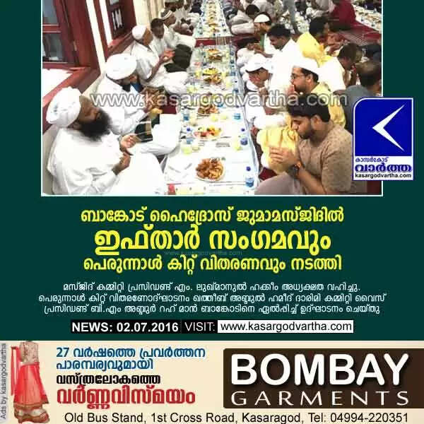 Keywords: Kasaragod, Kerala, Eid, Bangod, Ramadan, Eid Kit Distributed, Bangod Hydrose Juma Masjid, Inauguration, Ifthar meet conducted in Bangod Hydrose Juma Masjid.