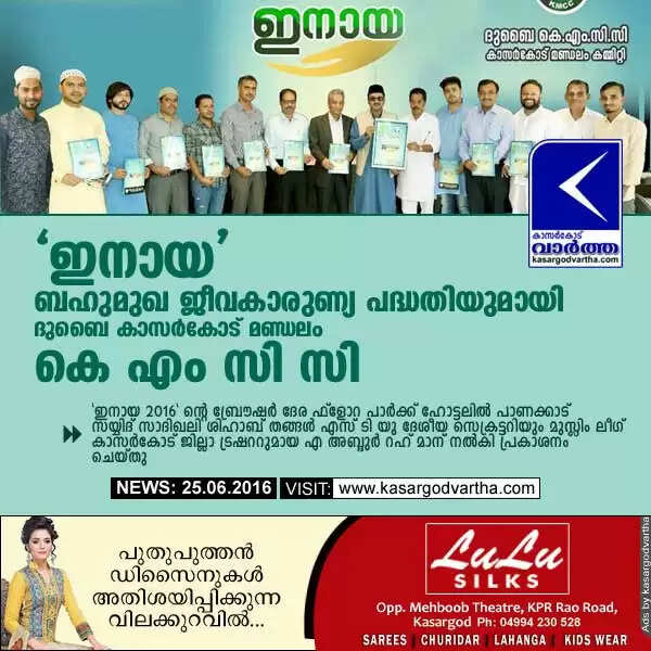 'ഇനായ' ബഹുമുഖ ജീവകാരുണ്യ പദ്ധതിയുമായി ദുബൈ കാസര്കോട് മണ്ഡലം കെ എം സി സി
