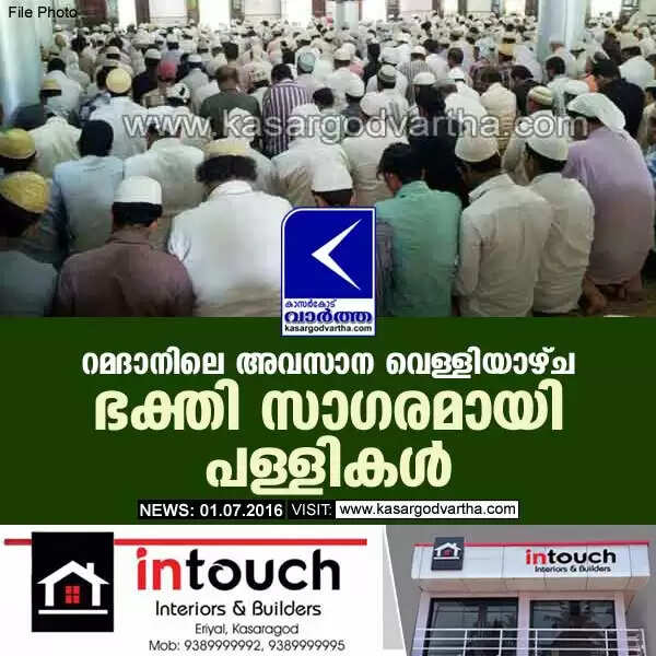 കാസര്കോട്: (www.kasargodvartha.com 01.07.2016) വിശുദ്ധ റമദാന് വിട പറയാന് ദിവസങ്ങള് മാത്രം ബാക്കിനില്ക്കെ അവസാന വെള്ളിയാഴ്ച വിശ്വസികളെ കൊണ്ട് പള്ളികള് വീര്പ്പുമുട്ടി. റമദാന് 26 വെള്ളിയാഴ്ച കാസര്കോട്ടെ എല്ലാ പള്ളികളും വിശ്വാസികളെ കൊണ്ട് നിറഞ്ഞു. ഇത്തവണ ലൈലത്തുല് ഖദ് റ് പ്രതീക്ഷിക്കുന്ന റമദാന് 27 ന്റെ രാവും വെള്ളിയാഴ്ചയും ഒത്തുവന്നത് വിശ്വാസികള്ക്ക് ഏറെ സന്തോഷകരമായി.