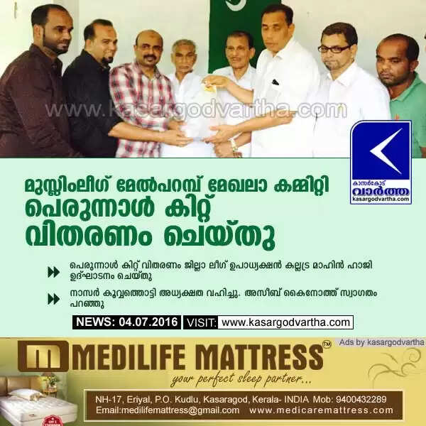 മുസ്ലിംലീഗ് മേല്പറമ്പ് മേഖലാ കമ്മിറ്റി പെരുന്നാള് കിറ്റ് വിതരണം ചെയ്തു