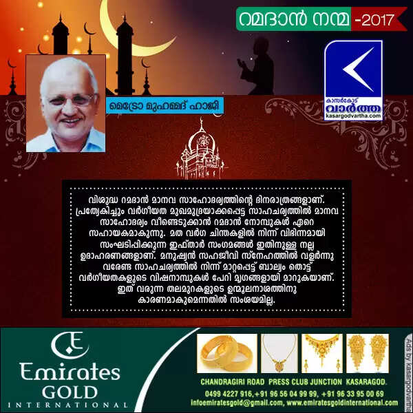 Keywords : Ramadan, Ramadan 2017, Kasaragod, Religion, Metro Muhammed Haji.