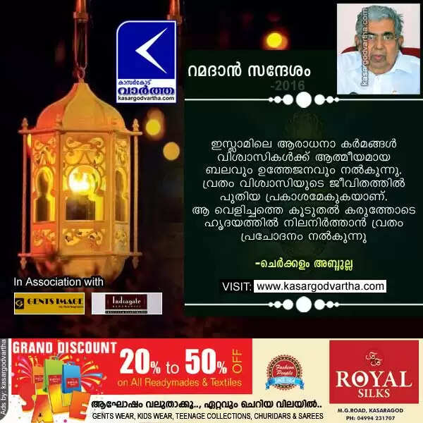 റമദാന് സന്ദേശം: ചെര്ക്കളം അബ്ദുല്ല