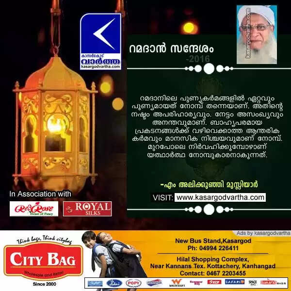 Keywords : Ramadan, Message, M Alikunhi Musliyar, Ramadan Message: M Alikunhi Musliyar.