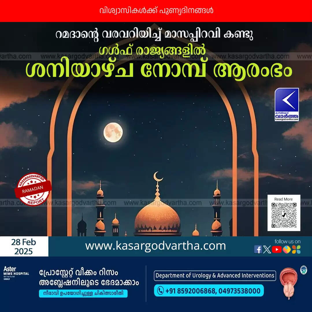 ദുബൈ: (KasargodVartha) ആത്മീയ വിശുദ്ധിയുടെയും സഹനത്തിൻ്റെയും പുണ്യ റമദാൻ മാസത്തിന് ഗൾഫ് രാജ്യങ്ങളിൽ ശനിയാഴ്ച തുടക്കമാകും. സൗദി അറേബ്യ, യു.എ.ഇ, ഖത്തർ, ബഹ്റൈൻ, കുവൈത്ത് തുടങ്ങിയ രാജ്യങ്ങളിൽ മാസപ്പിറവി ദൃശ്യമായതിനെ തുടർന്നാണ് ശനിയാഴ്ച റമദാൻ ആരംഭിക്കുന്നത്. വിവിധ രാജ്യങ്ങളിലെ മതകാര്യ വകുപ്പുകൾ ഇക്കാര്യം ഔദ്യോഗികമായി സ്ഥിരീകരിച്ചു. മാസപ്പിറവി ദൃശ്യമായതോടെ ഗൾഫ് നാടുകളിൽ വിശ്വാസികൾ തറാവീഹ് നിസ്കാരത്തിനും ഒരുങ്ങിക്കഴിഞ്ഞു.