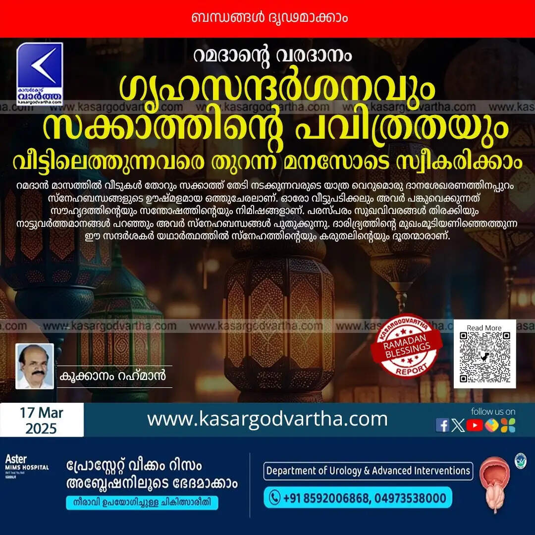 Ramadan Blessings | റമദാൻ്റെ വരദാനം: ഗൃഹസന്ദർശനവും സക്കാത്തിൻ്റെ പവിത്രതയും; വീട്ടിലെത്തുന്നവരെ തുറന്ന മനസോടെ സ്വീകരിക്കാം