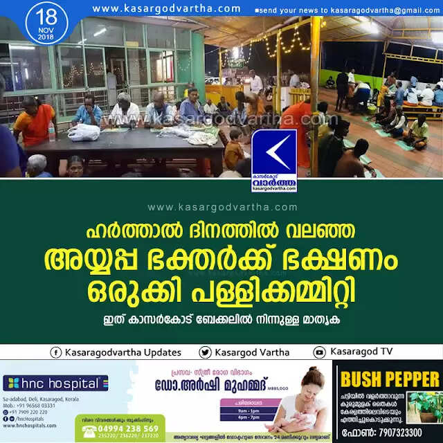 ഹര്ത്താല് ദിനത്തില് വലഞ്ഞ അയ്യപ്പ ഭക്തര്ക്ക് ഭക്ഷണം ഒരുക്കി പള്ളിക്കമ്മിറ്റി; ഇത് കാസര്കോട് ബേക്കലില് നിന്നുള്ള മാതൃക