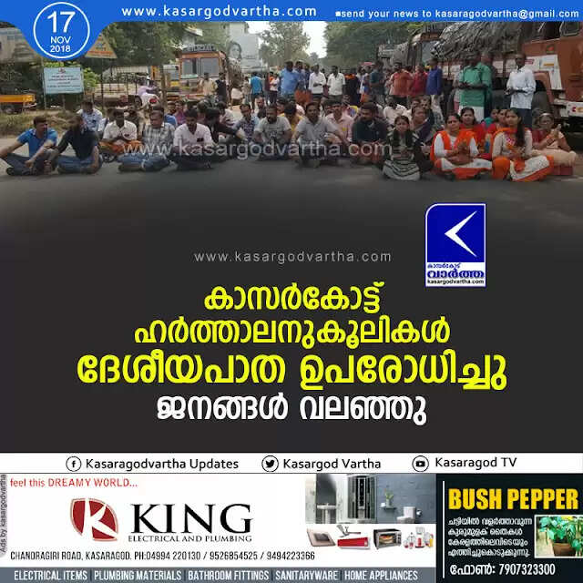 Keywords: Kasaragod, Kerala, news, National highway, Protest, Top-Headlines, Sabarimala, Harthal; National Highway blocked
