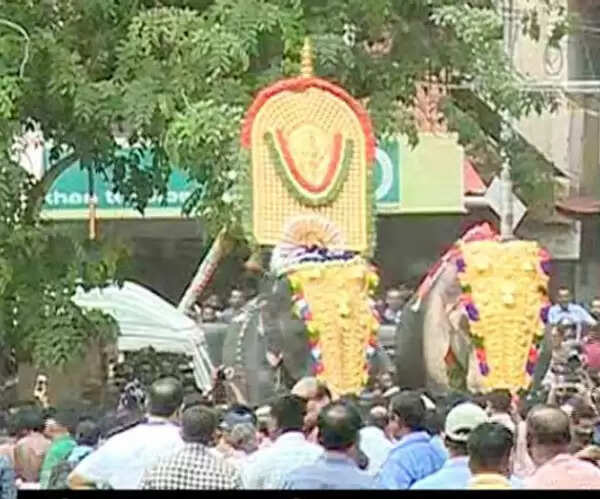 തെച്ചിക്കോട്ടുകാവ് രാമചന്ദ്രന് തിടമ്പേറ്റി; കര്ശന സുരക്ഷയില് തൃശൂര് പൂര വിളംബരം നടന്നു