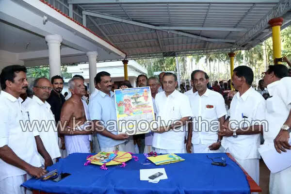 Keywords: Kasaragod, Kerala, Melparamba, news, Religion, Release, calendar, they, Festival, MLA, K.Kunhiraman MLA, Aramanganam Thukkochi Valappu Tharavadu Wayanattukulavan Theyyam Kettu Festival, Brochure, Vayanattu Kulavan Theyyam Kettu Festival Brochure and logo released