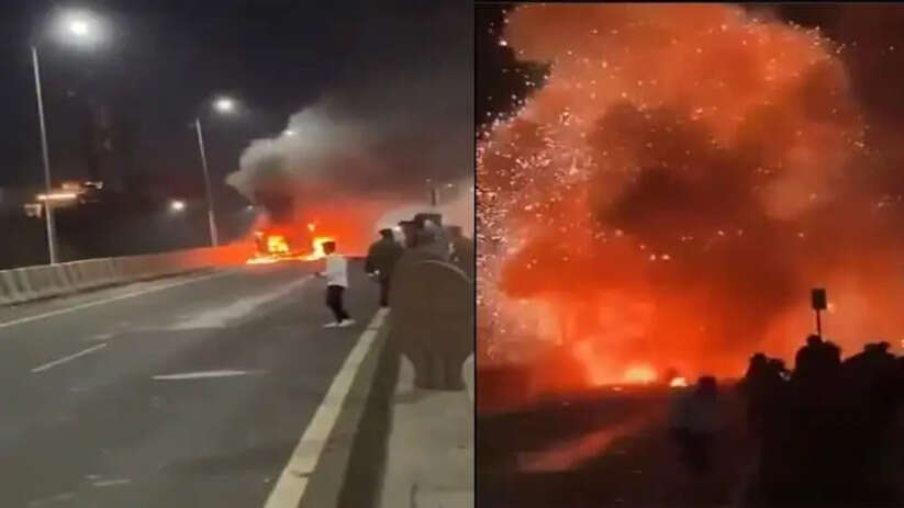Accident | ആംബുലന്സിന് തീപിടിച്ച് ഓക്സിജന് സിലിണ്ടര് പൊട്ടിത്തെറിച്ചു; വാഹനത്തിലുണ്ടായിരുന്ന ഗര്ഭിണി രക്ഷപ്പെട്ടത് അത്ഭുതകരമായി, വീഡിയോ