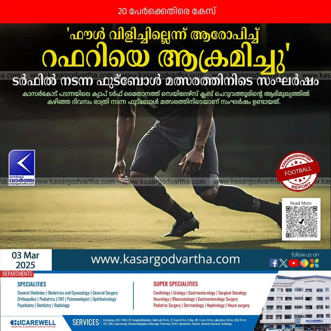 A football match led to a clash after the referee didn't call a foul. 20 people have been charged with attacking the referee in a Kasaragod match.