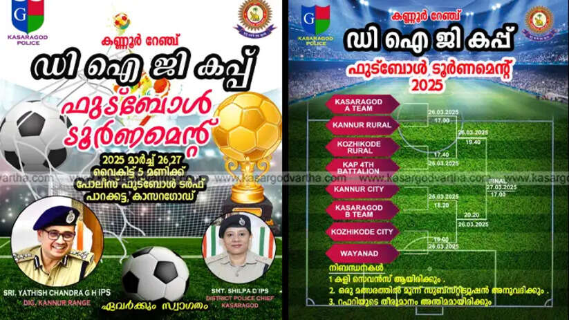 The inaugural football match for the Kannur Range DIG Cup will be held on the newly constructed police turf ground at Parakkata AR Camp, Kasaragod on March 26 and 27.