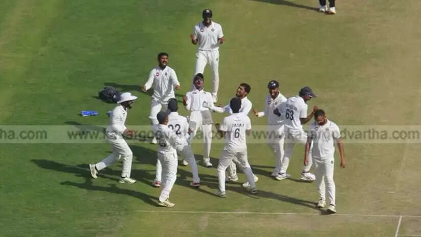 ആദിത്യ സര്വാതെയുടെ പന്തില് കാസര്കോട്ടുകാരന് മുഹമ്മദ് അസ്ഹറുദ്ദീന്റെ മിന്നല് സ്റ്റംപിങ്ങാണ് ജയ്മീതിനെ പുറത്താക്കിയത്. സിദ്ധാര്ഥ് ദേശായി ആദിത്യയുടെ പന്തില് എല്ബിഡബ്ല്യുവാക്കി. 11 റണ്സ് ആവശ്യമായ ഘട്ടത്തിലാണ് അവസാന വിക്കറ്റില് പ്രിയജിങ്സിങ്ങും നാഗസ്വാലയും ബാറ്റിങ് തുടങ്ങിയത്. പ്രിയജിങ്സിങ് മൂന്ന് റണ്സെടുത്തു.