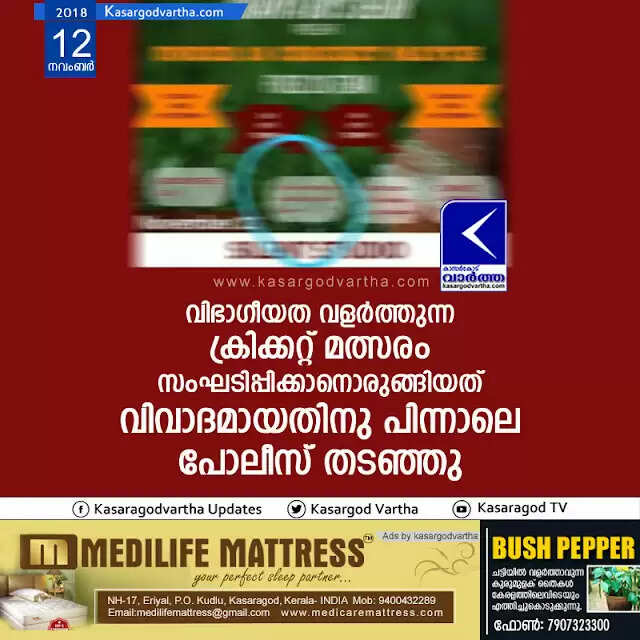 വിഭാഗീയത വളര്‍ത്തുന്ന ക്രിക്കറ്റ് മത്സരം സംഘടിപ്പിക്കാനൊരുങ്ങിയത് വിവാദമായതിനു പിന്നാലെ പോലീസ് തടഞ്ഞു
