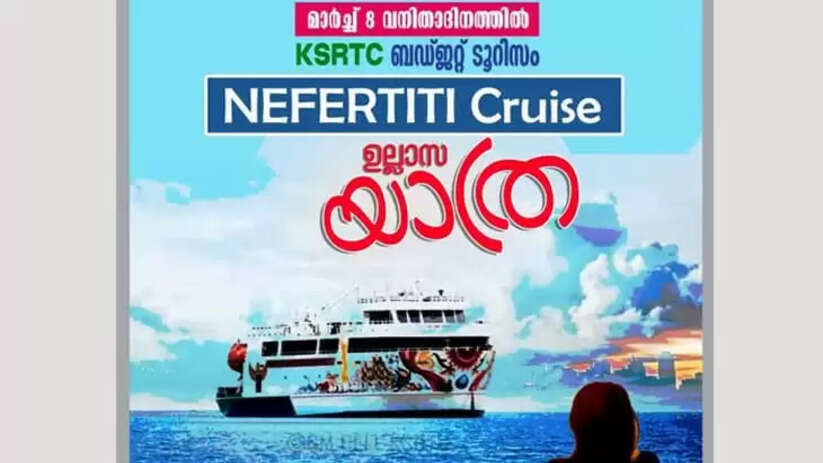 KSRTC and NEFERTITI Cruise are offering a special cruise for women on International Women's Day, March 8th. Enjoy Kochi's scenic beauty with discounts up to ₹600. Bookings available at select KSRTC depots.
