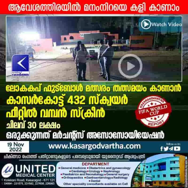 Big Screen | ലോകകപ് ഫുട്ബോള് മത്സരം തത്സമയം കാണാന് കാസര്കോട്ട് 432 സ്ക്വയര് ഫീറ്റില് വമ്പന് സ്ക്രീന്; ചിലവ് 30 ലക്ഷം; ഒരുക്കുന്നത് മര്ചന്റ്സ് അസോസോയിയേഷന്