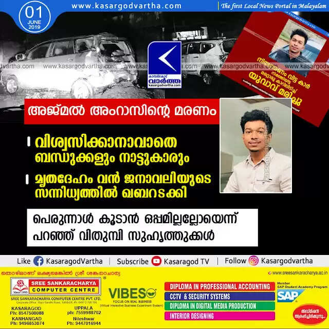 Keywords: Kerala, kasaragod, Accident, Car-Accident, Deadbody, Friend, Eid, Ajmal Ambraz's dead body burried.