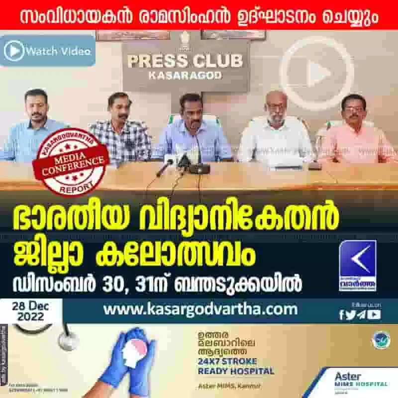 Keywords: Latest-News, Kerala, Kasaragod, Top-Headlines, Press Meet, Video, School, School-Fest, Festival, Kalolsavam, Bharatiya Vidyaniketan District Arts Festival, Bharatiya Vidyaniketan District Arts Festival on 30th and 31st December.