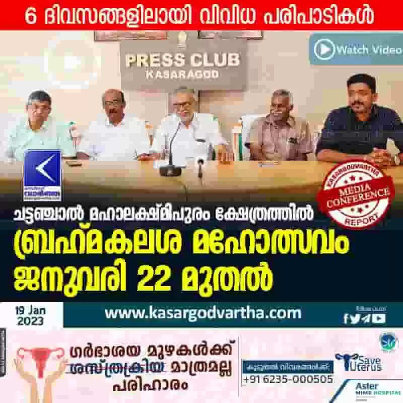 Keywords: Latest-News, Kerala, Kasaragod, Top-Headlines, Press Meet, Video, Temple Fest, Temple, Festival, Religion, Brahmakalasha Mahotsavam at Chattanchal Mahalakshmipuram Temple from January 22.