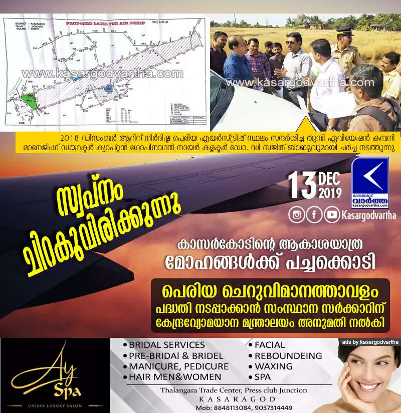 സ്വപ്നം ചിറകുവിരിക്കുന്നു; കാസര്കോടിന്റെ ആകാശയാത്ര മോഹങ്ങള്ക്ക് പച്ചക്കൊടി; പെരിയ ചെറുവിമാനത്താവളം പദ്ധതി നടപ്പാക്കാന് സംസ്ഥാന സര്ക്കാറിന് കേന്ദ്രവ്യോമയാന മന്ത്രാലയം അനുമതി നല്കി