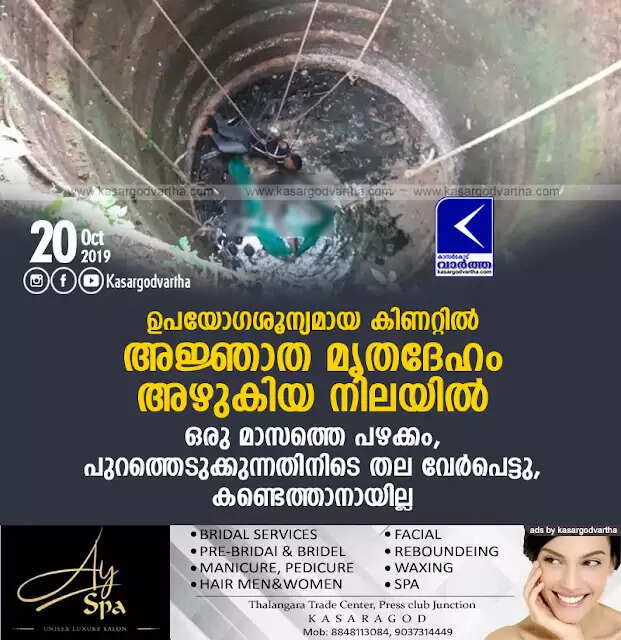 Keywords: Kasaragod, Kerala, news, Top-Headlines, Well, Deadbody, Dead body found in Unused Well