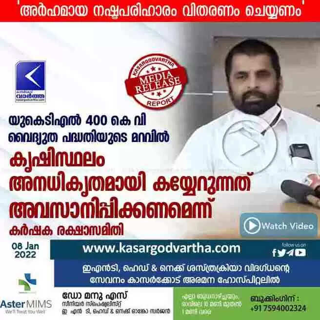 Keywords: Kasaragod, Kerala, News, Top-Headlines, Press meet, Video, Farmer, Development project, Electricity, Farmers 'Protection Committee demands that end to illegal encroachment on farmland.