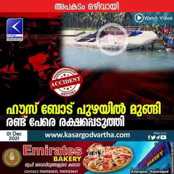 Keywords: News, Kerala, Kasaragod, Top-Headlines, Video, Boat accident, Boat, River, Accident, Kanhangad, Travlling, Tourism, Houseboat sinks in river; Two people rescued.