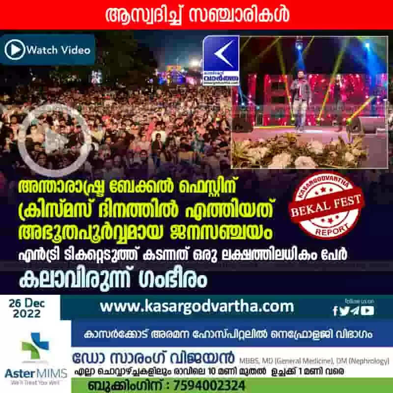 Bekal Beach Fest | അന്താരാഷ്ട്ര ബേക്കല്‍ ഫെസ്റ്റിന് ക്രിസ്മസ് ദിനത്തില്‍ എത്തിയത് അഭൂതപൂര്‍വ്വമായ ജനസഞ്ചയം; എൻട്രി ടികറ്റെടുത്ത് കടന്നത് ഒരു ലക്ഷത്തിലധികം പേര്‍; കലാവിരുന്ന് ഗംഭീരം; ആസ്വദിച്ച് സഞ്ചാരികള്‍