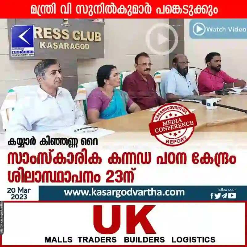Keywords: News, Kerala, Kasaragod, Top-Headlines, Press Meet, Video, Programme, Kayyar Kinhanna Rai, Kayyar Kinhanna Rai Cultural Kannada Learning House Foundation Stone Laying on 23rd.