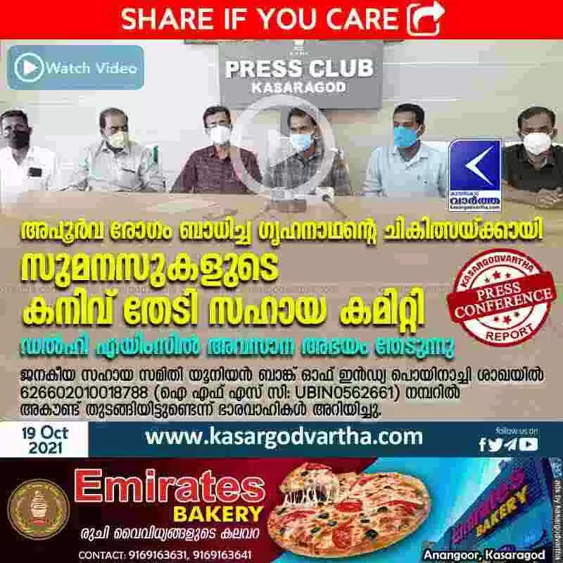 Keywords: Kasaragod, News, Kerala, New Delhi, Driver, Agriculture, Needs help, Top-Headlines, Press meet, Uduma, COVID-19, Doctor, Man seeks financial Support for treatment.
