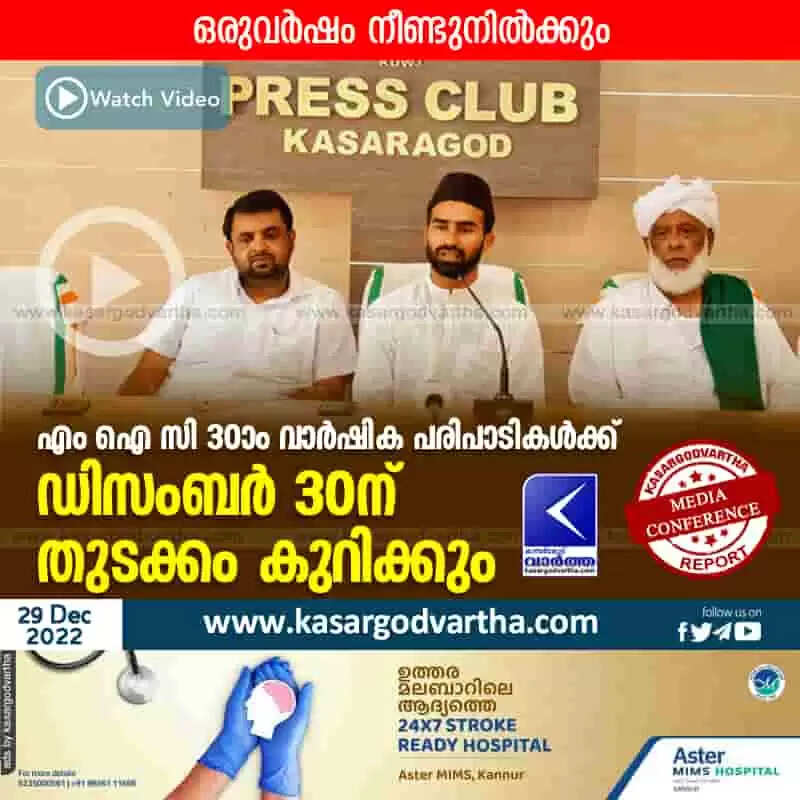 Keywords: MIC's 30th anniversary events will begin on December 30, Kerala, Kasaragod, news, Top-Headlines,Anniversary,MIC,Press Club,Press meet,president,Islam,video.