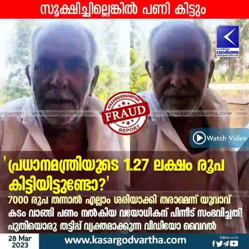 Scam | 'പ്രധാനമന്ത്രിയുടെ 1.27 ലക്ഷം രൂപ കിട്ടിയിട്ടുണ്ടോ?' 7000 രൂപ തന്നാല് എല്ലാം ശരിയാക്കി തരാമെന്ന് യുവാവ്; കടം വാങ്ങി പണം നല്കിയ വയോധികന് പിന്നീട് സംഭവിച്ചത്! പുതിയൊരു തട്ടിപ്പ് വ്യക്തമാക്കുന്ന വീഡിയോ വൈറല്