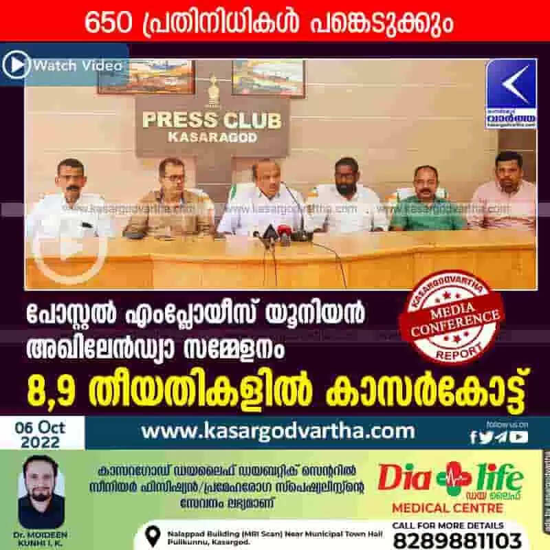Keywords:  Latest-News, Kerala, Kasaragod, Top-Headlines, Video, Press meet, Conference, Postal Employees Union Nationwide Conference, Postal Employees Union Nationwide Conference at Kasaragod on 8th and 9th.