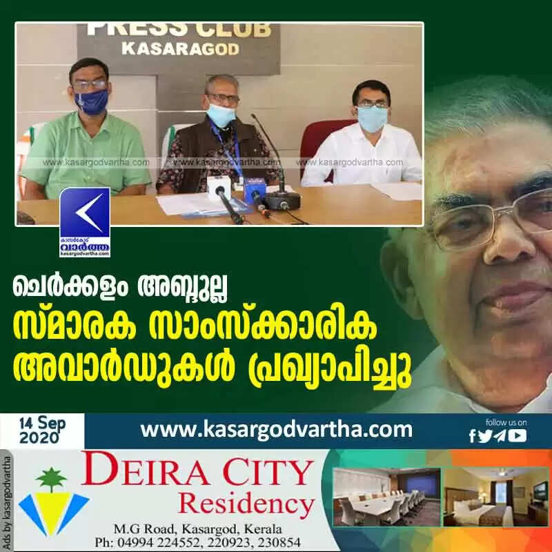 Keywords: Kasaragod, News, Kerala, Press meet, Cherkalam Abdulla, Award, Video, Press Club, Cherkalam Abdullah Memorial Cultural Congregation