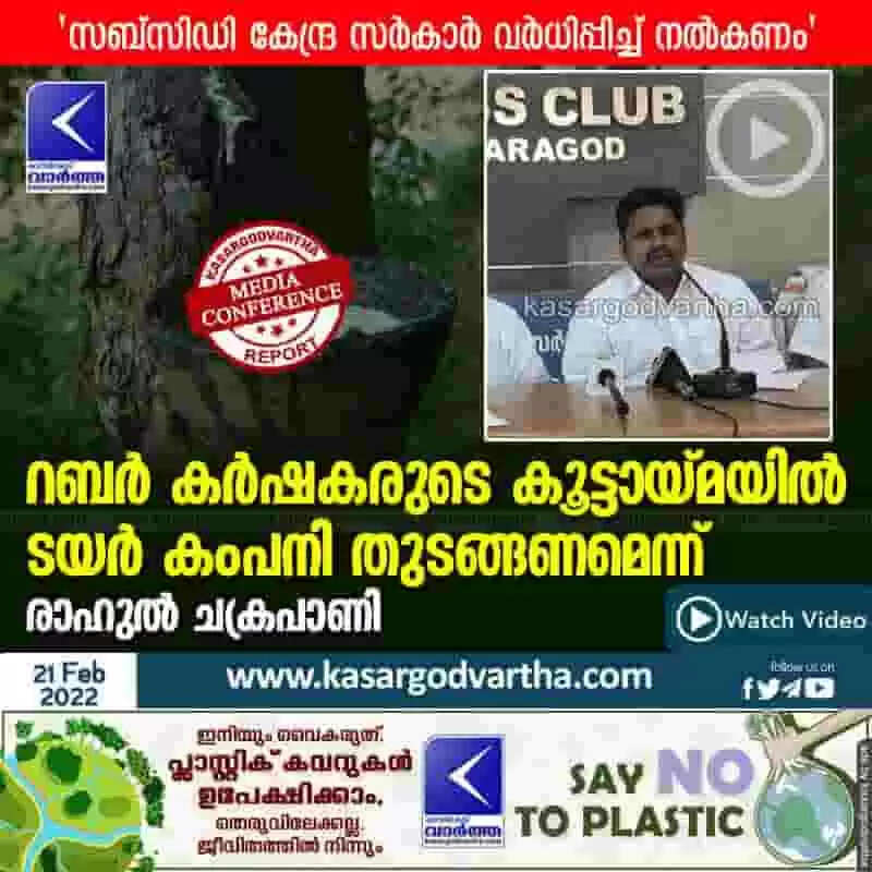 Keywords: News, Kerala, Kasaragod, Press meet, Video, Bank Loans, Farmer, Top-Headlines, Government, Rahul Chakrapani, Rahul Chakrapani says that to start tire company led by rubber farmers.