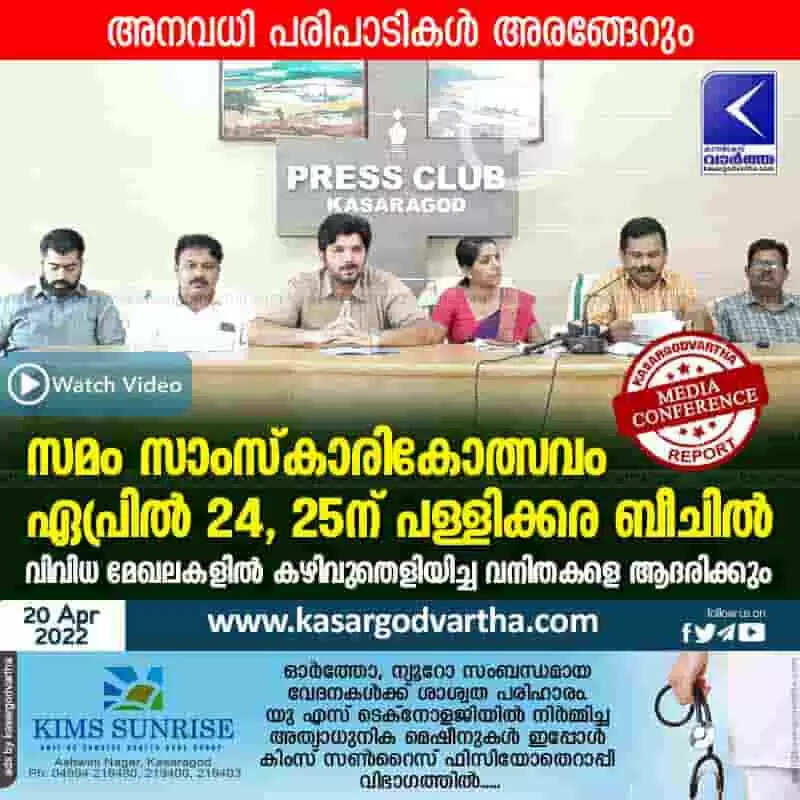 Keywords: News, Kerala, Kasaragod, Top-Headlines, Press meet, Conference, Festival, Video, Pallikara, Programme, Samam Cultural Festival, Samam Cultural Festival on April 24 and 25.