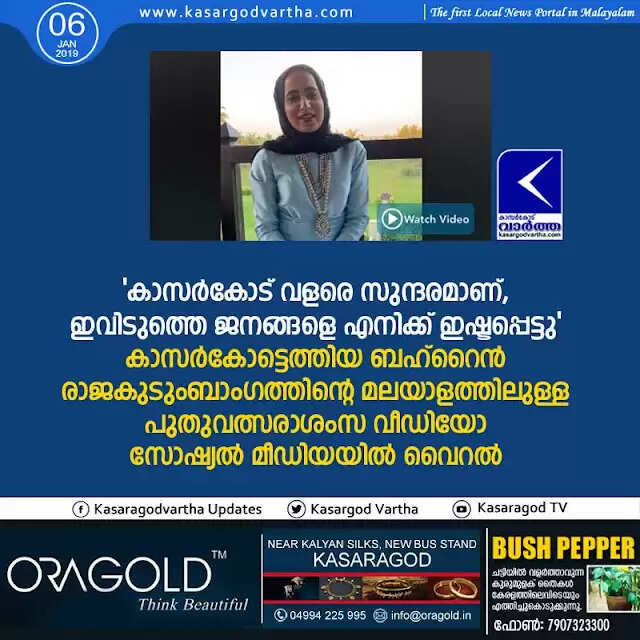 'കാസര്കോട് വളരെ സുന്ദരമാണ്, ഇവിടുത്തെ ജനങ്ങളെ എനിക്ക് ഇഷ്ടപ്പെട്ടു'; കാസര്കോട്ടെത്തിയ ബഹ്റൈന് രാജകുടുംബാംഗത്തിന്റെ മലയാളത്തിലുള്ള പുതുവത്സരാശംസ വീഡിയോ സോഷ്യല് മീഡിയയില് വൈറല്