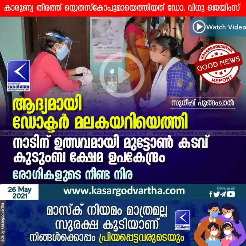 വെള്ളരിക്കുണ്ട്: (www.kasargodvartha.com 26.05.2021) ആദ്യമായി ഒരു ഡോക്ടർ മല കയറിയെത്തിയപ്പോൾ മുട്ടോൺ കടവ് കുടുംബ ക്ഷേമ ഉപകേന്ദ്രത്തിൽ രോഗികളുടെ നീണ്ട നിര. കൊന്നക്കാട് പ്രാഥമിക ആരോഗ്യ കേന്ദ്രത്തിനു കീഴിൽ കൊന്നക്കാട് നിന്നും മൂന്ന് കിലോമീറ്റർ അകലെയുള്ള മുട്ടോൺ കടവിലെ കരിമ്പിൽ കുഞ്ഞമ്പു സ്മാരക കുടുംബ ക്ഷേമ ഉപ കേന്ദ്രത്തിലാണ് ബുധനാഴ്ച ഉച്ചകഴിഞ്ഞ് കൊന്നക്കാട് പ്രാഥമിക ആരോഗ്യ കേന്ദ്രത്തിലെ മെഡികൽ ഓഫീസർ ഡോ. വിധു ജെയിംസിന്റെ നേതൃത്വത്തിലുള്ള ആരോഗ്യ പ്രവർത്തകർ മലകയറി എത്തിയത്.