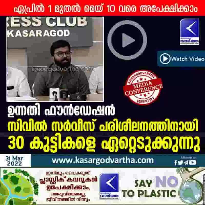 Keywords: News, Kerala, Kasaragod, Top-Headlines, Video, Pressmeet, Conference, The Unnati Foundation is recruiting 30 children for civil service training.