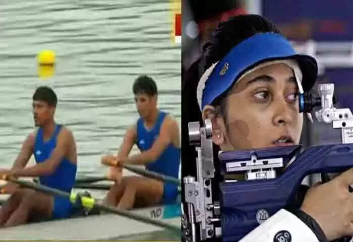 Keywords: News, World, World-News, Sports, Top-Headlines, Asian Games, China, India, Medal, Silver, Bronze, Rowing, Arjun Lal Jat, Arvind Singh, Ramita, Mehuli Ghosh, Ashi Chouksey, Asian Games 2023: 3 Silvers, 1 Bronze In Bag; Men's Hockey Team In Action.2️⃣nd medal in #Shooting for 🇮🇳